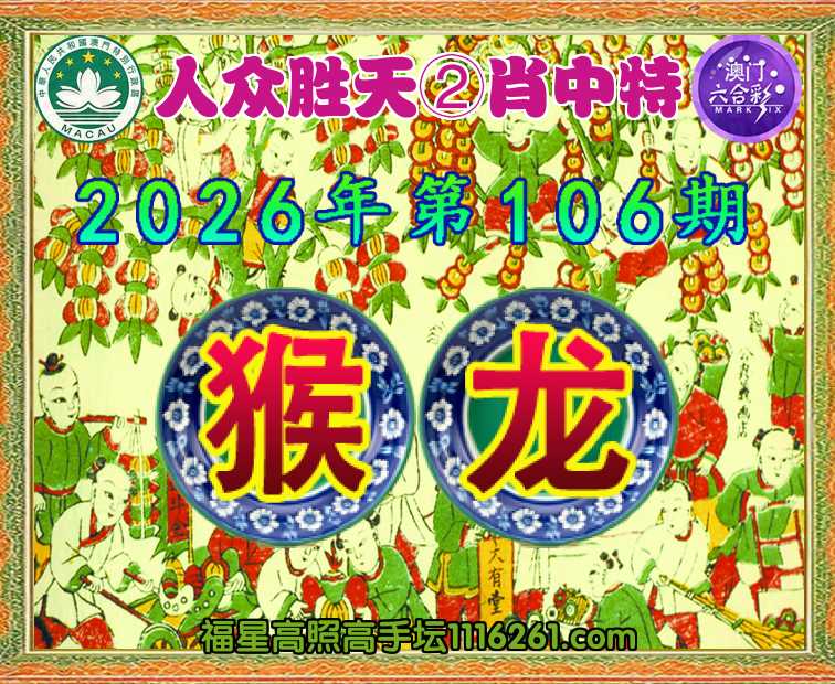 主题: 106期:🏅福星高照【人众胜天✨②肖中特】免费查看